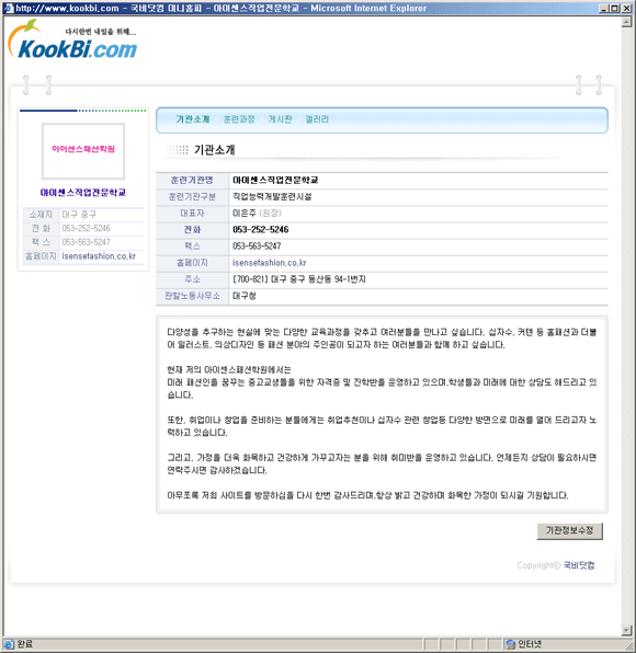 • ±â°ü¼Ò°³´Â À§ ±×¸² ÇÏ´Ü¿¡ ÀÖ´Â ±â°üÁ¤º¸ ¼öÁ¤À» ÅëÇØ¼­ ÇØ´ç ±â°üÀÇ ·Î°í ¹× ÀϹݼҰ³ ³»¿ëÀ» ¼öÁ¤ÇÏ½Ç ¼ö ÀÖ½À´Ï´Ù.